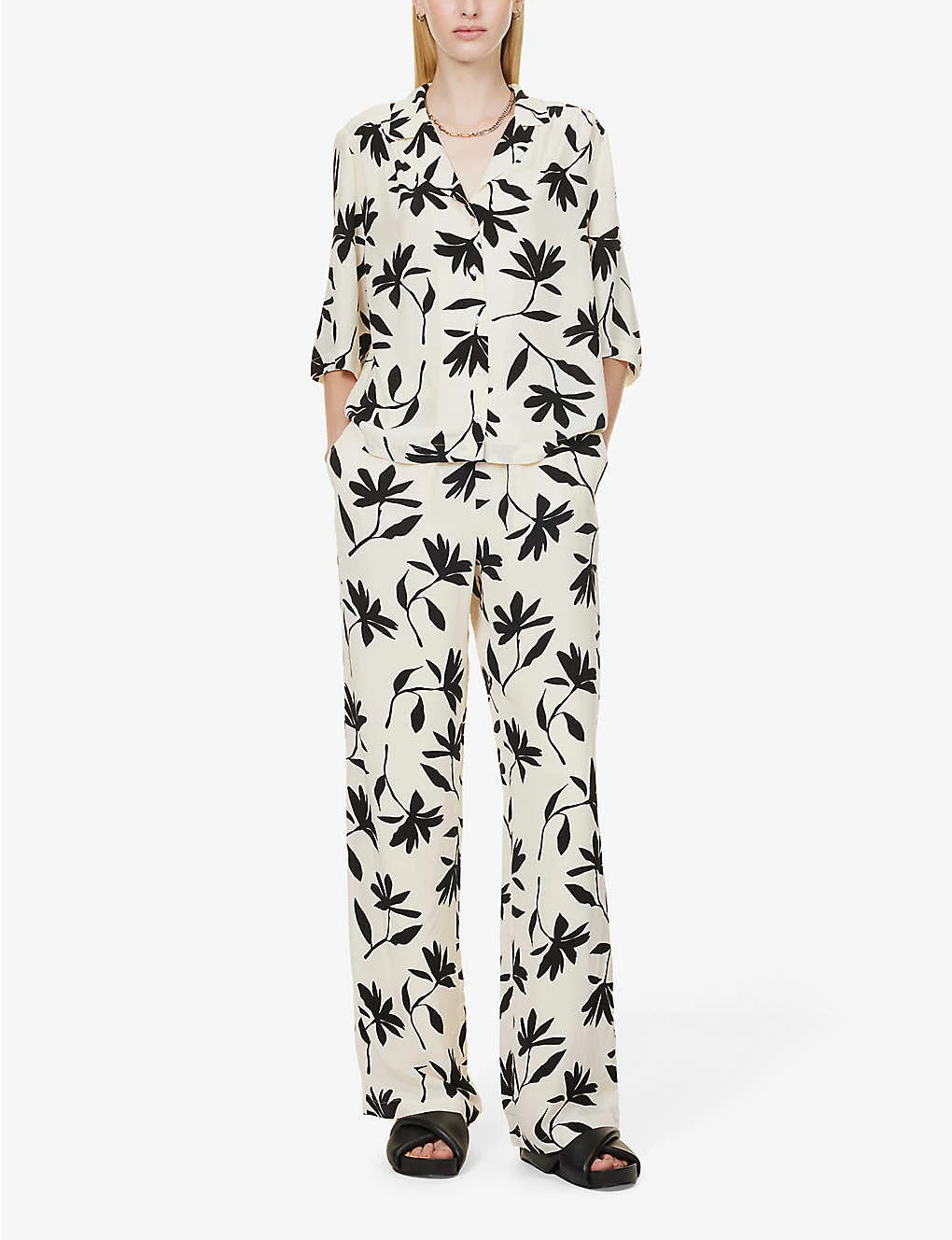 ANINE BING Owen Floral-print Wide-leg Mid-rise Woven Trousers