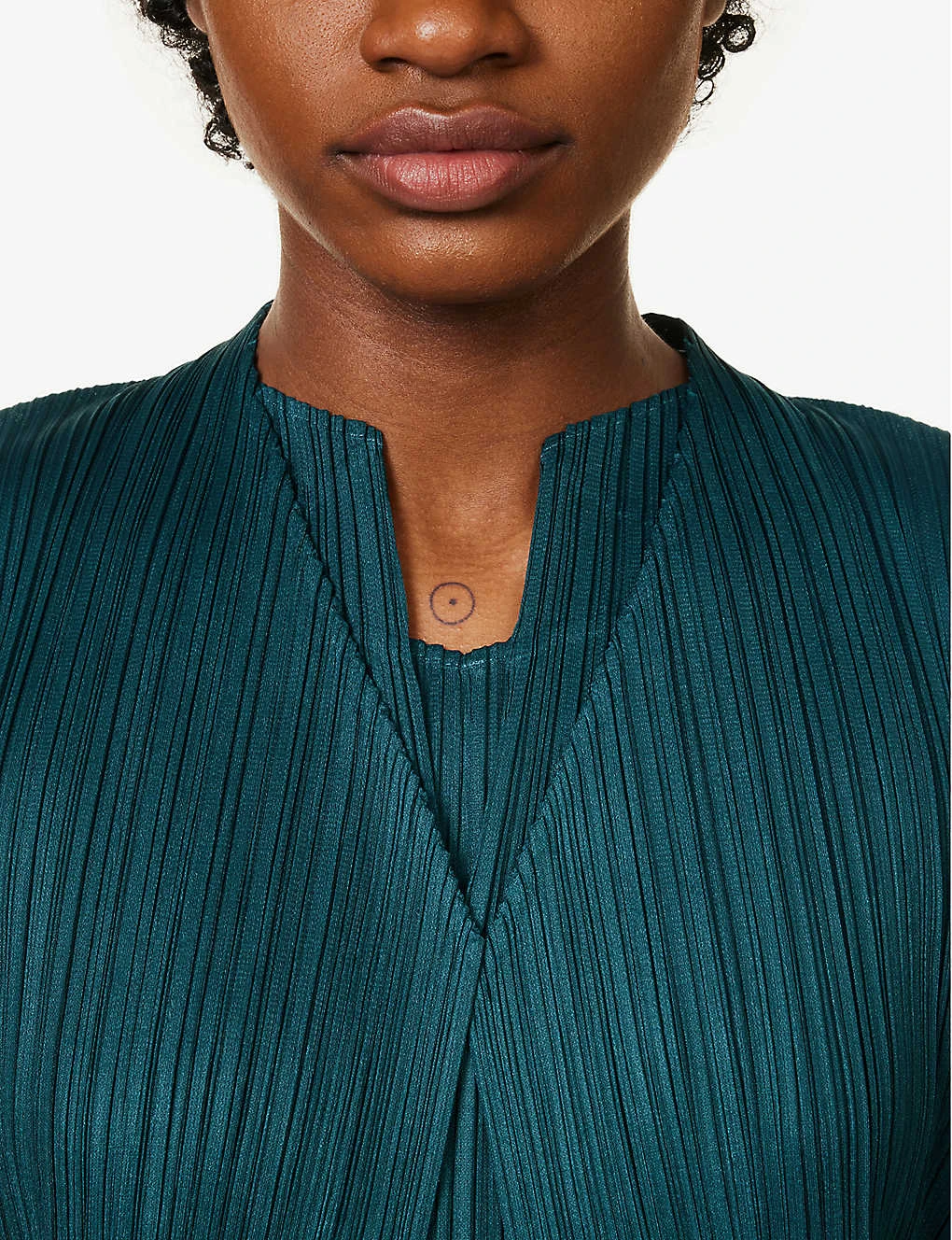 - Regular fit, V-neckline, long sleeves, all-over technical pleated texture