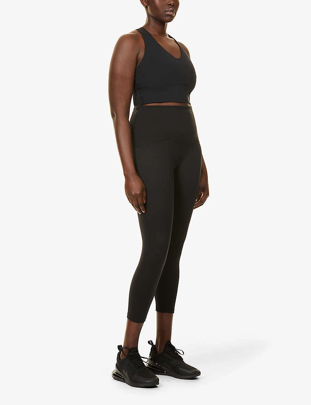 - High rise, elasticated waistband, hidden pocket in waistband, gusset