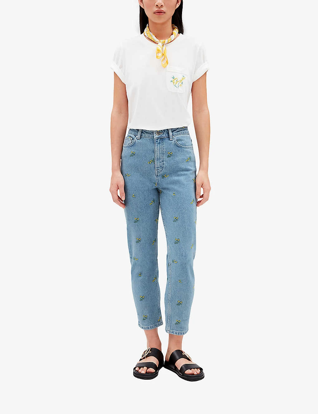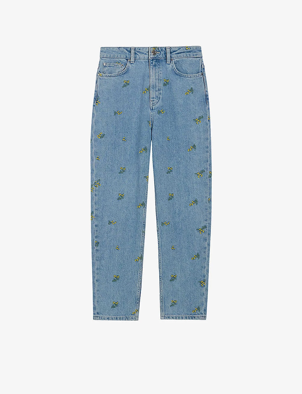 CLAUDIE PIERLOT Mimosa Floral-embroidered Straight-leg High-rise Jeans