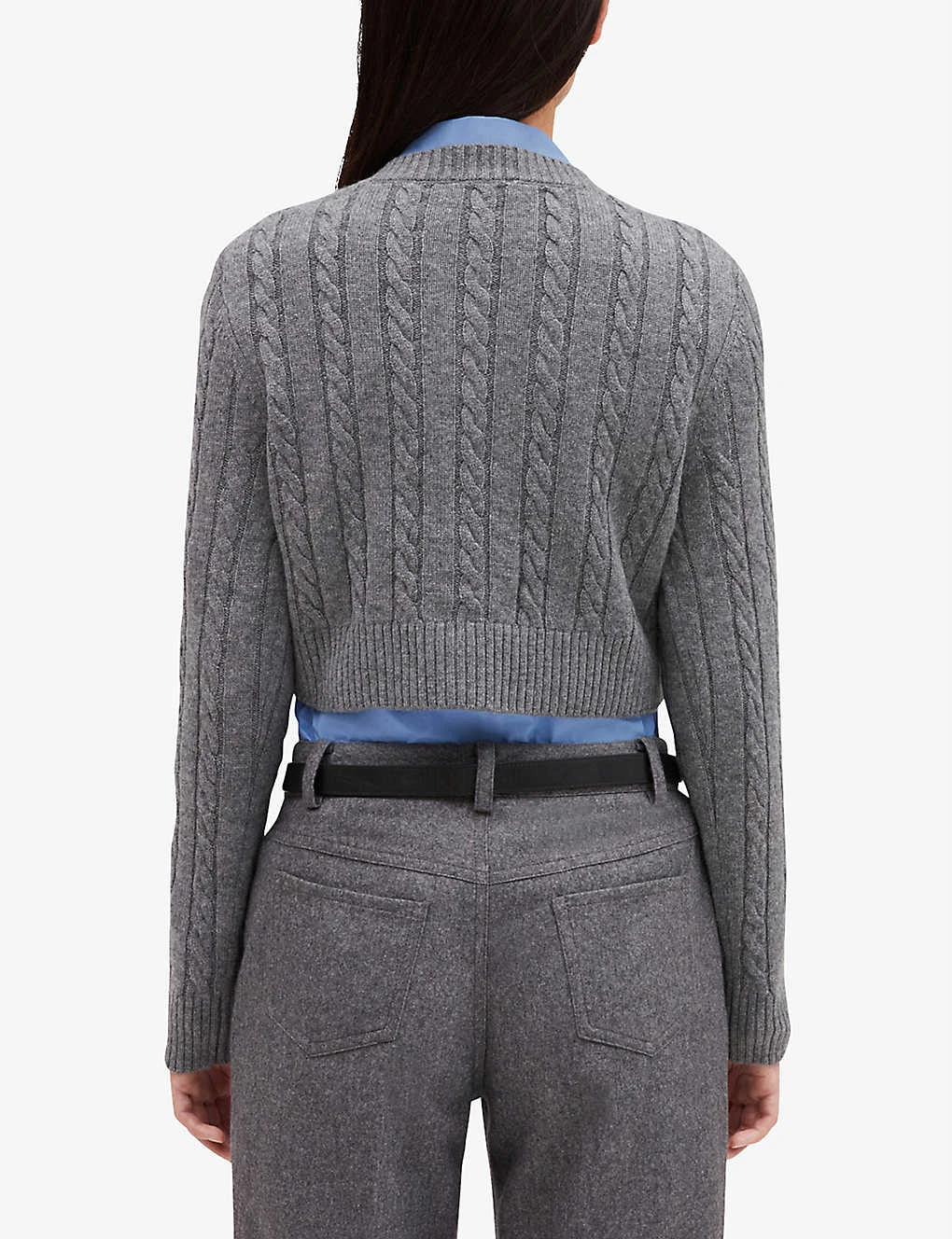 - Round ribbed neck, long sleeves, ribbed cuffs, cropped length, all-over cable-knit