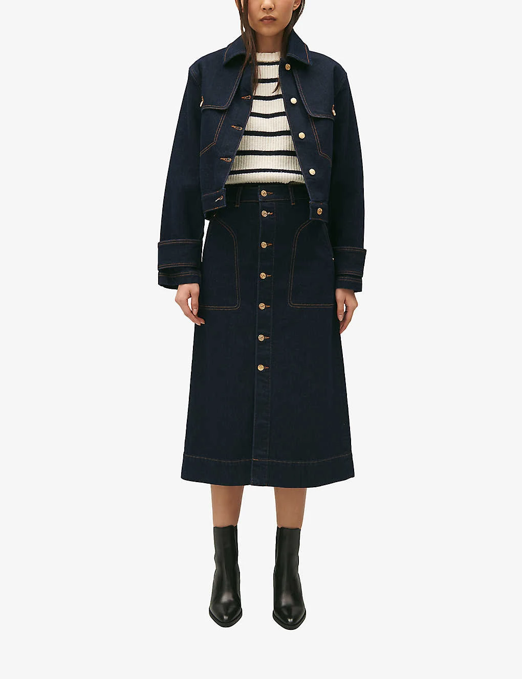 CLAUDIE PIERLOT Villy Straight-fit Cropped-length Stretch-denim Jacket