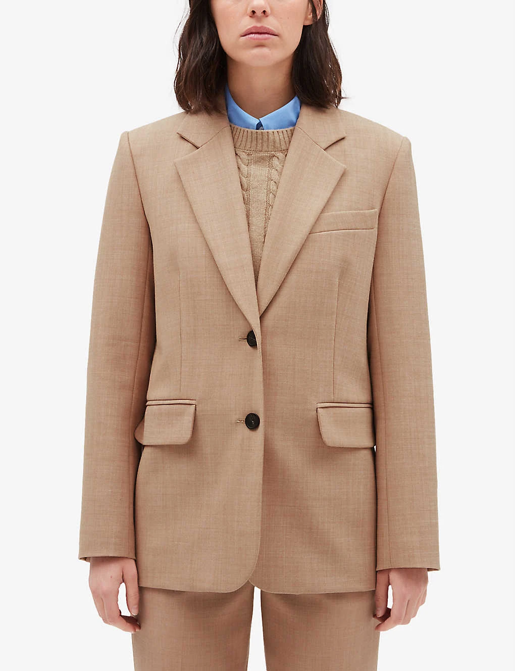 - 52% polyester, 44% wool, 4% elastane; body lining 100% viscose; sleeve lining 100% acetate
