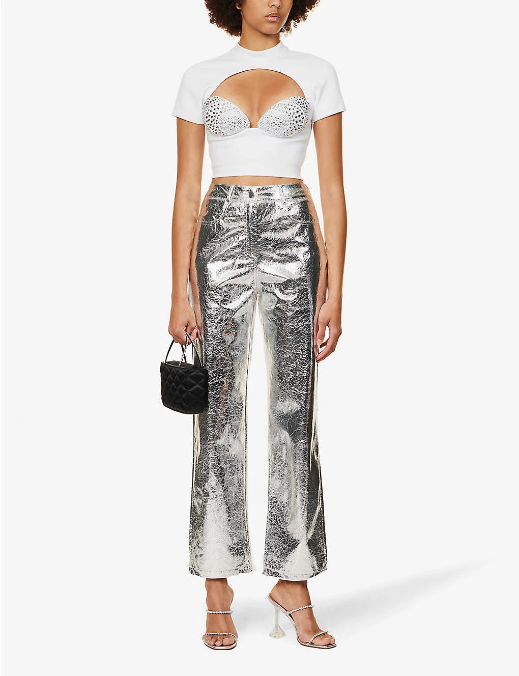 Be the first to review “Lupe Metallic High-rise Straight-leg Faux-leather Trousers” Cancel reply