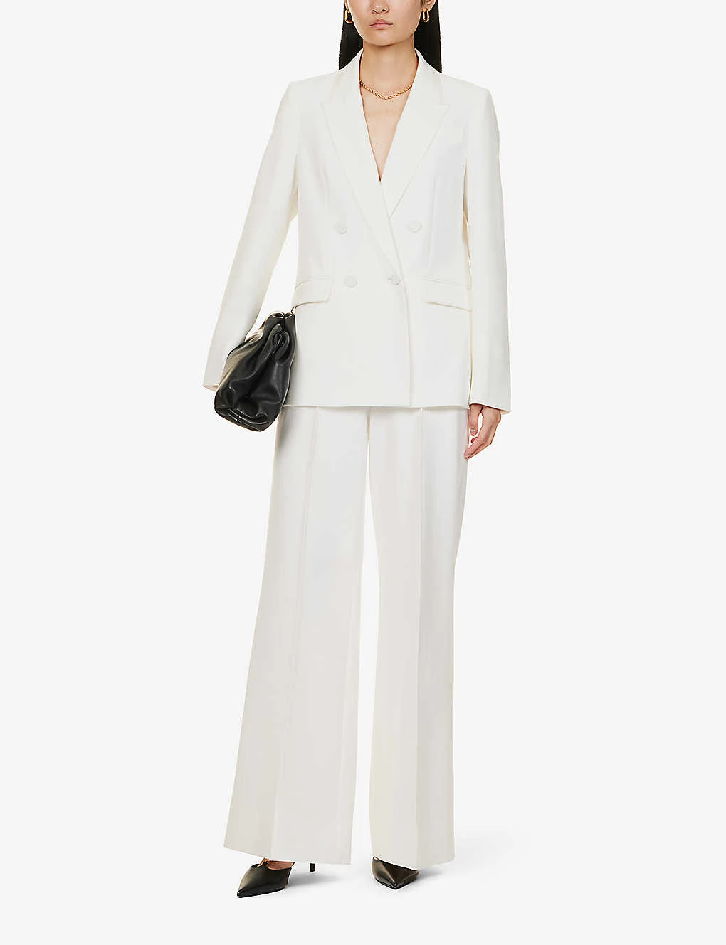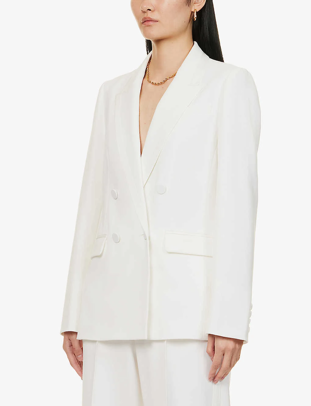 ME AND EM Double-breasted Padded-shoulder Stretch-woven Blazer