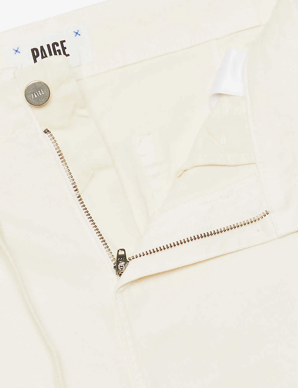 - Exposed button and concealed zip-fly fastening at front