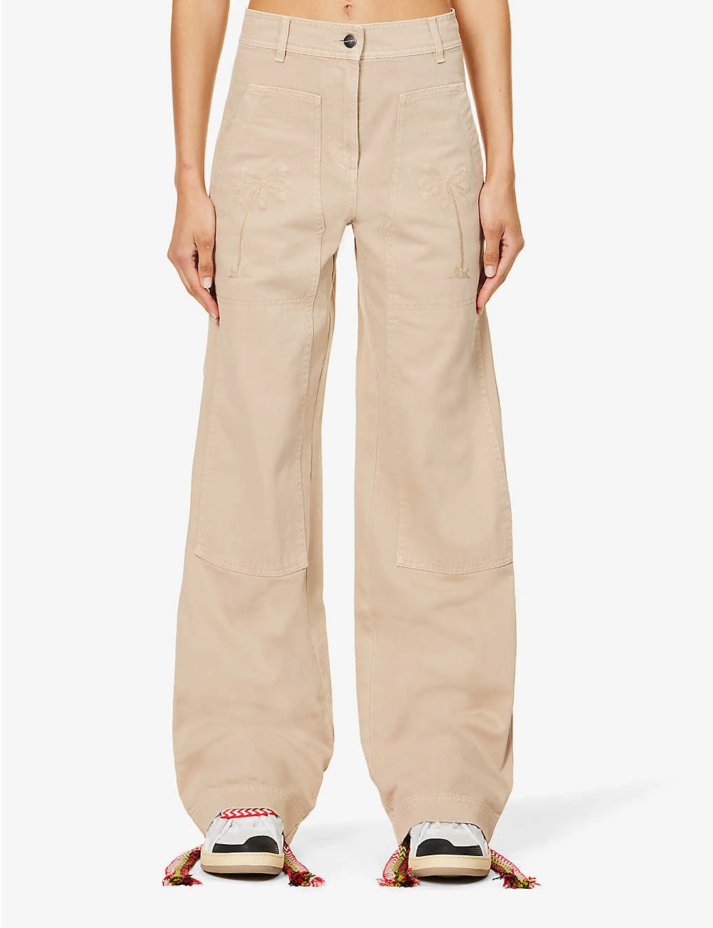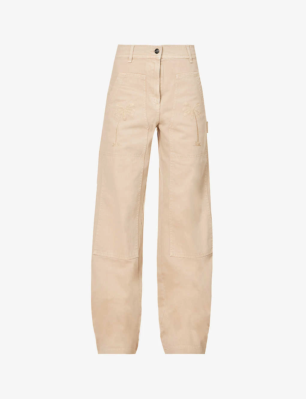 Palm Angels Bull Brand-patch Wide-leg Mid-rise Cotton Trousers