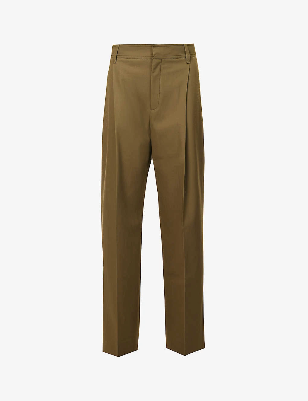 Pleated Wide-leg High-rise Organic-cotton Trousers
