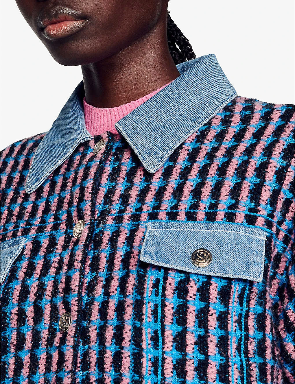 Be the first to review “Sandro Gigina Checked Denim-trimmed Stretch-tweed Jacket” Cancel reply
