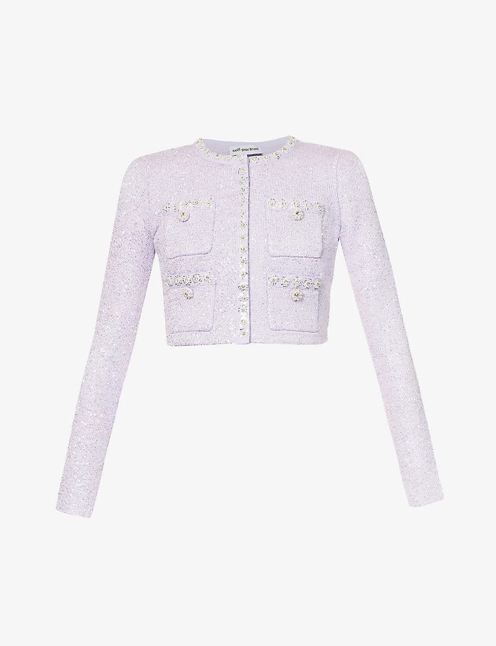 Be the first to review “SELF PORTRAIT Sequin-embellished Cropped Cotton And Wool-blend Knitted Cardigan” Cancel reply