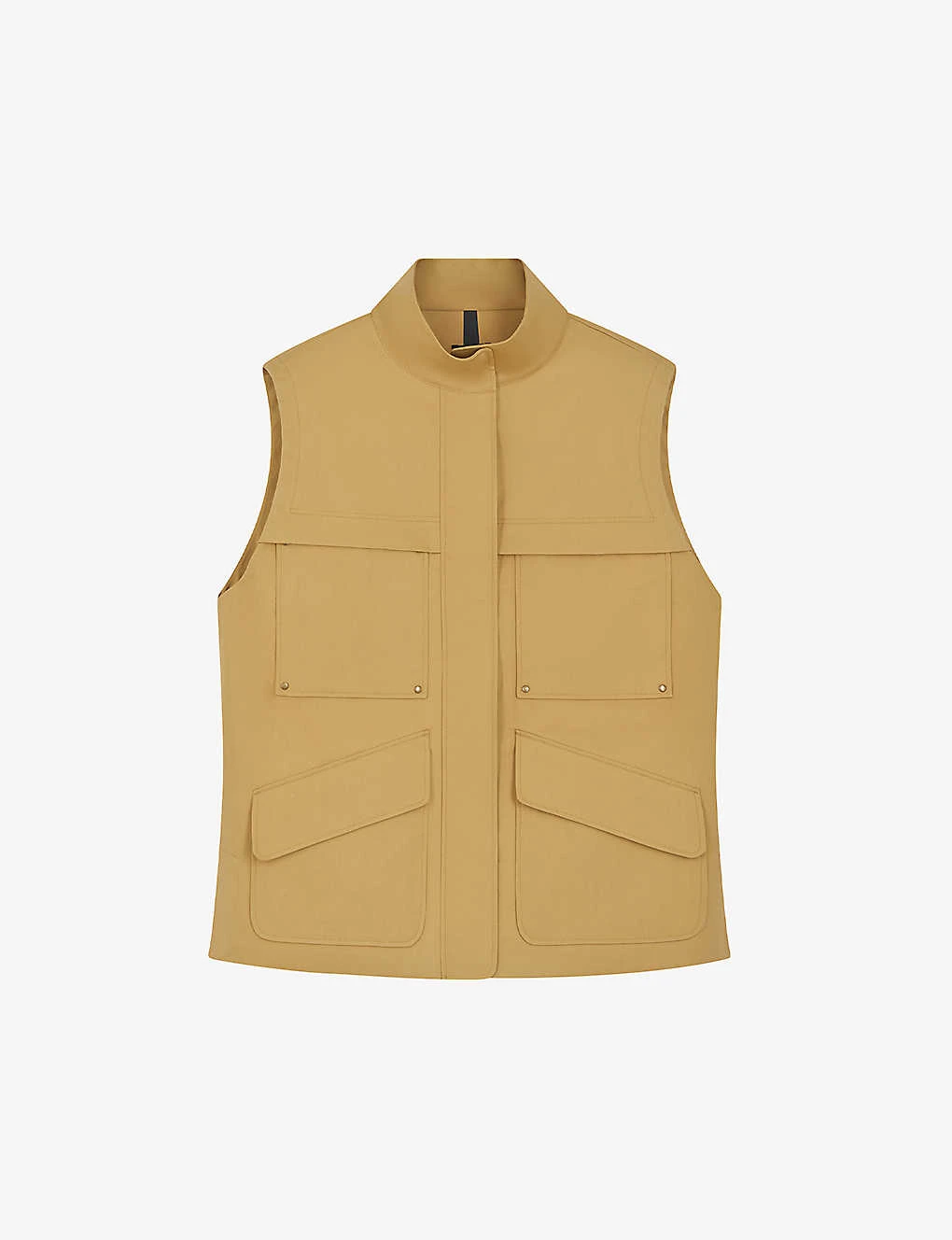 - High neckline, sleeveless, two pockets at the chest, two pockets at the side