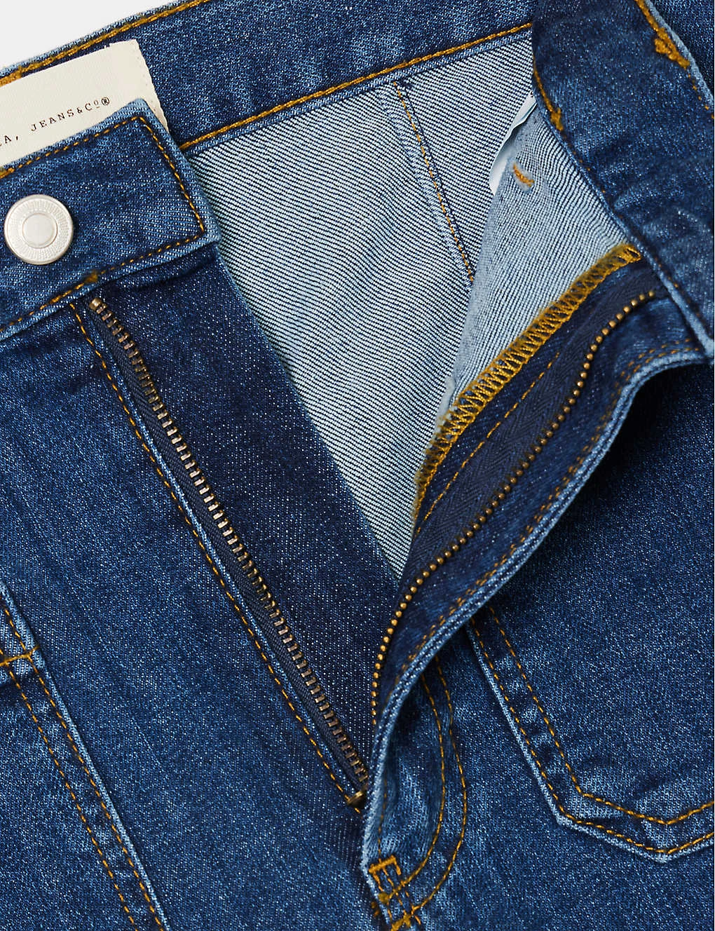 - Regular fit, high rise, flared leg, belt loops, contrast stitching, two patch pockets at front, darts at back, two patch pockets at back, brand patch at back