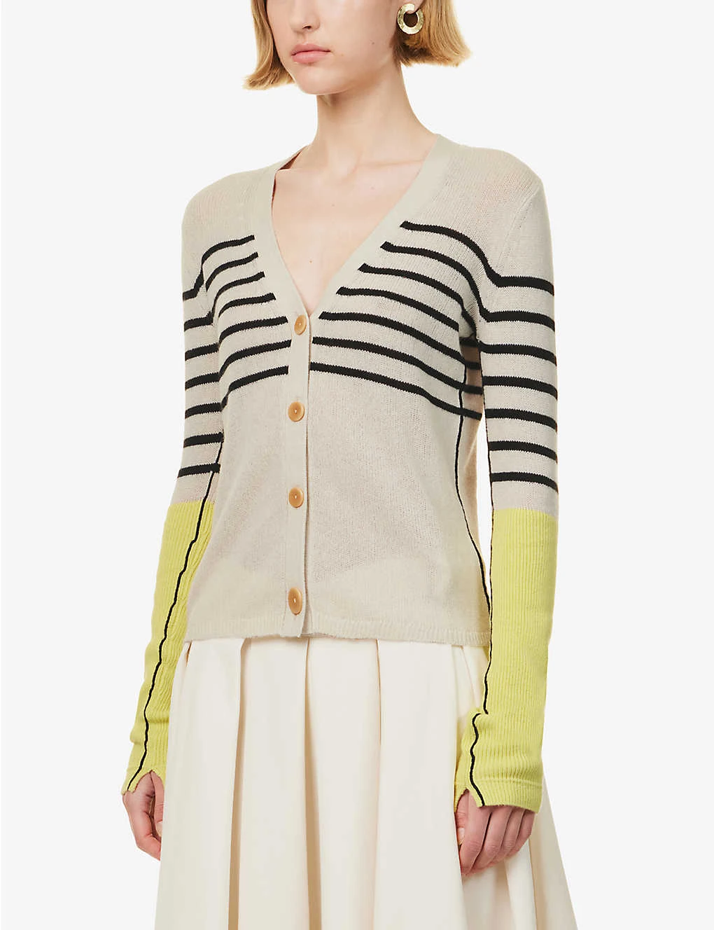 Striped Purl-knit Recycled-cashmere And Organic-cotton Blend Cardigan