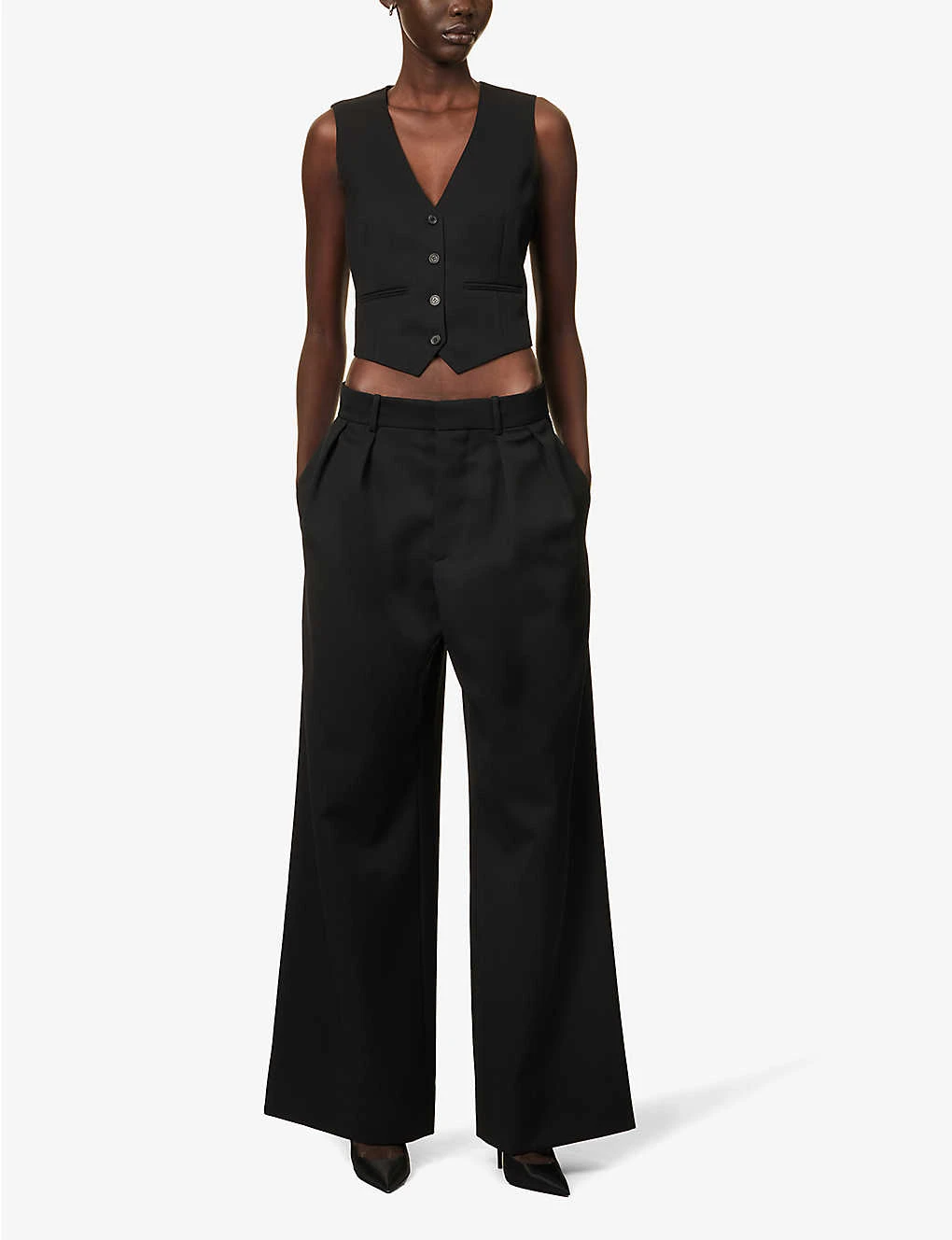 Be the first to review “Structured-waist Pleated Wide-leg Low-rise Wool Trousers” Cancel reply