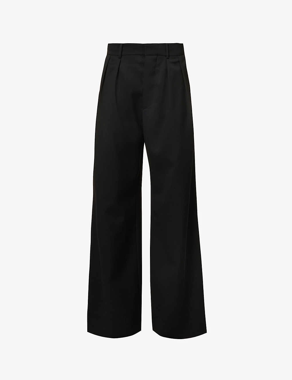 Structured-waist Pleated Wide-leg Low-rise Wool Trousers