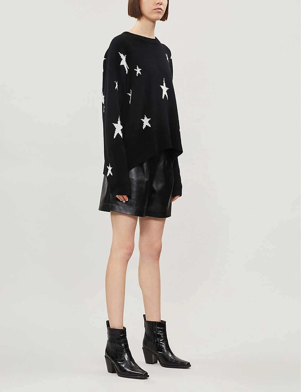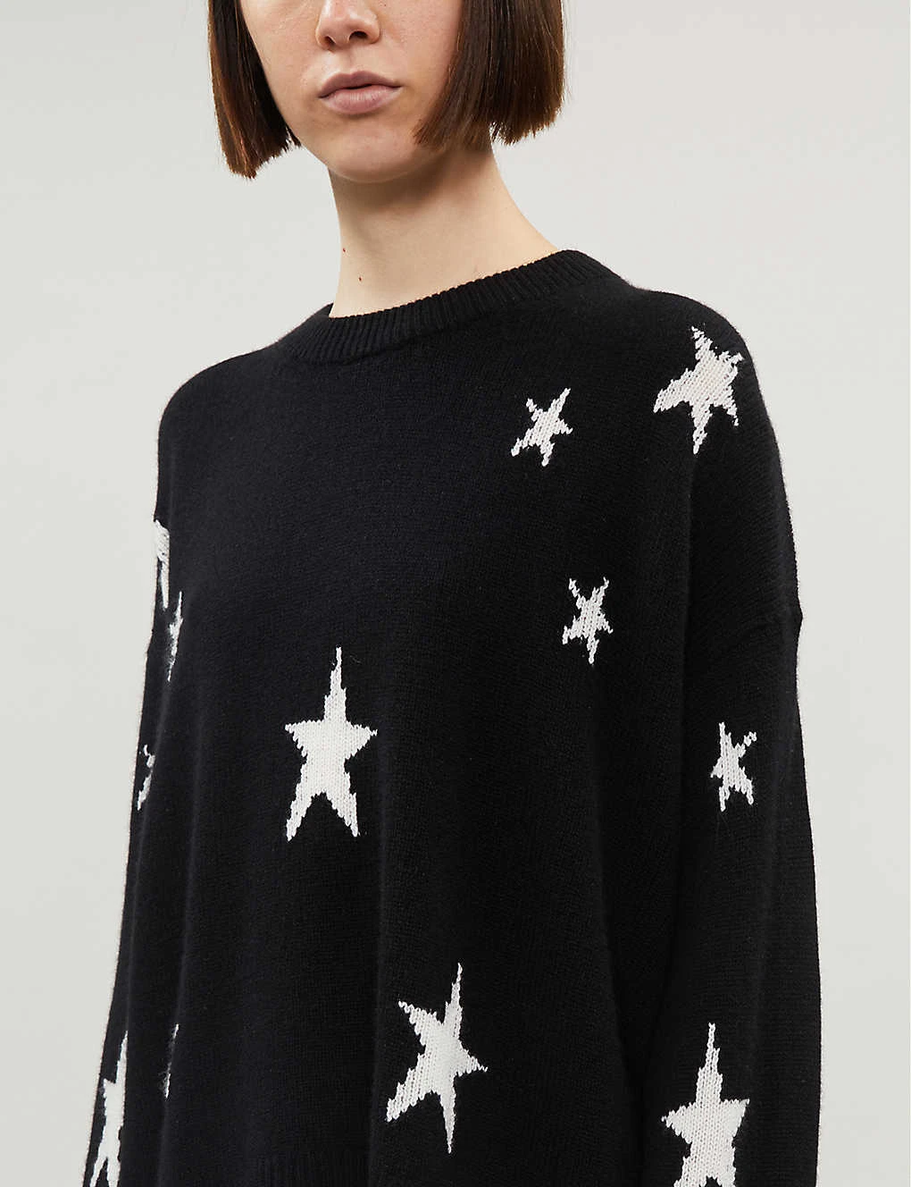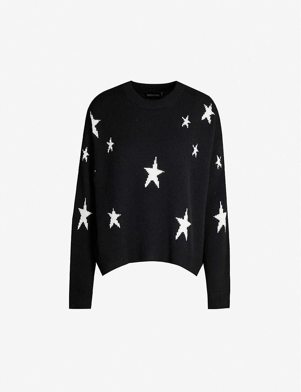 Zadig & Voltaire cashmere jumper Slips on Round neck, dropped shoulders, long sleeves, all-over graphic pattern, fine knit, ribbed trims 100% cashmere Dry clean True to size Size small: length 25.5″” Model is 5ft 7.5” and wears a size small